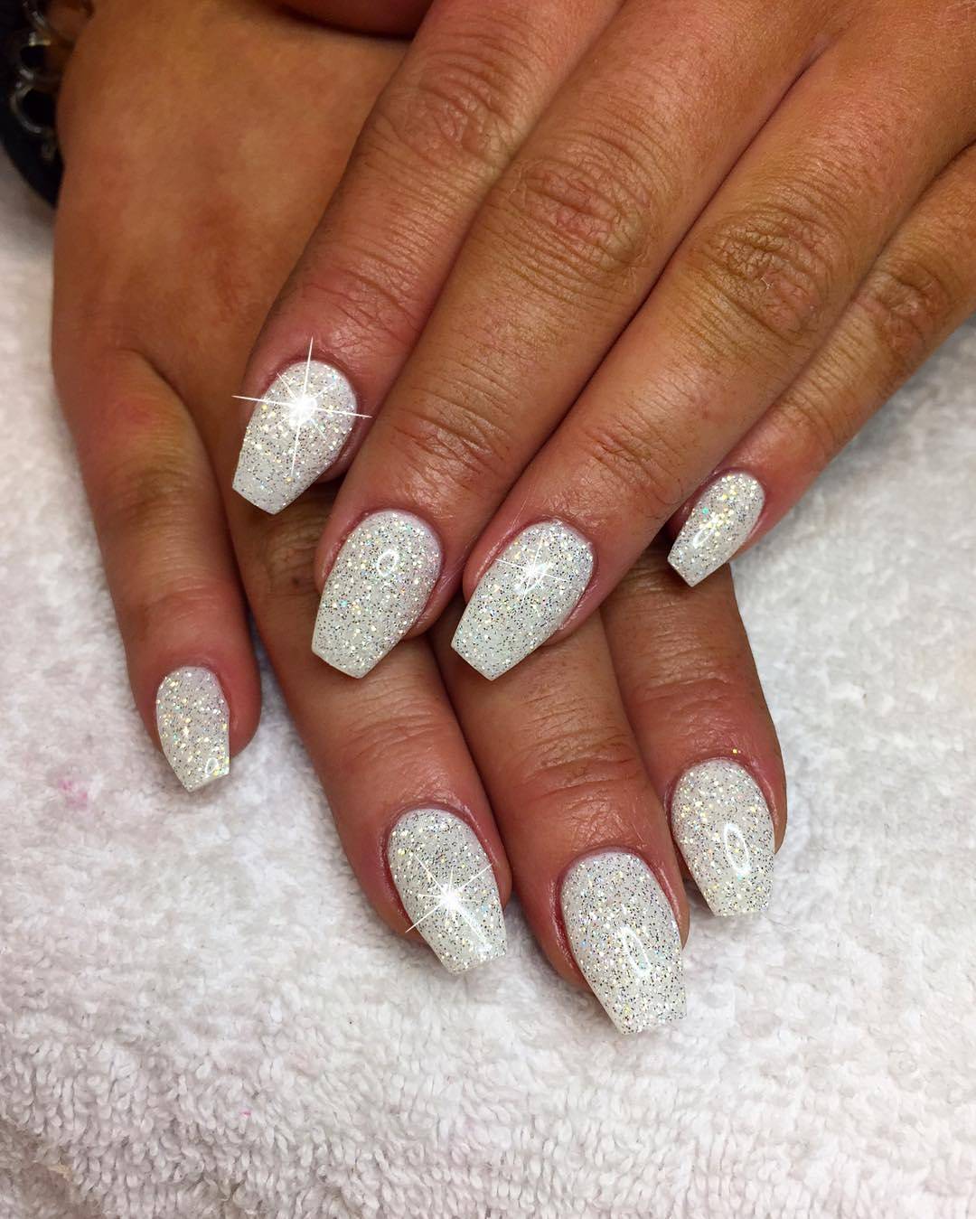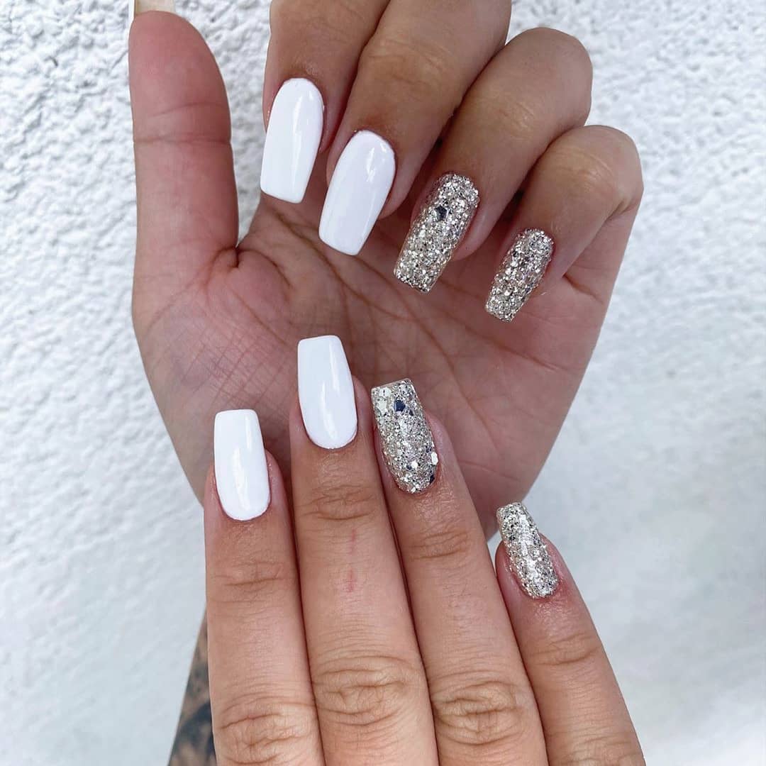 Un look completamente bianco può risultare elegante, ma a volte troppo freddo o sterile. Per evitare un effetto clinico, puoi spezzare con dettagli dorati, perline o glitter per aggiungere luminosità e un tocco chic.